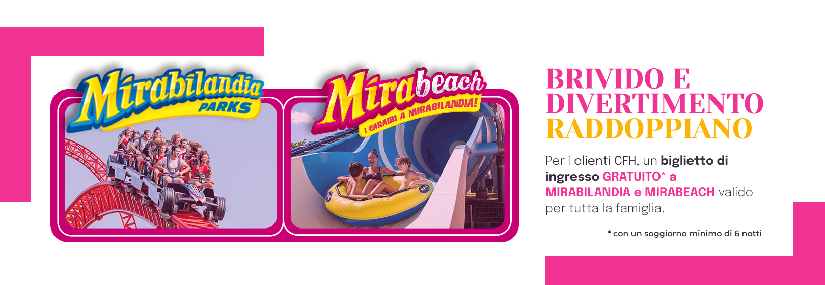In regalo l'ingresso gratuito* per tutta la famiglia al parco divertimenti Mirabilandia e al parco acquatico Mirabeach